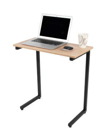 Mesa Portátil Wicklow, estructura en metal con acabado en pintura electrostática disponible en negro, blanco o gris. Superficie en tablero melamínico Madecor, disponible en Duna (tono claro) o Coñac (tono oscuro).